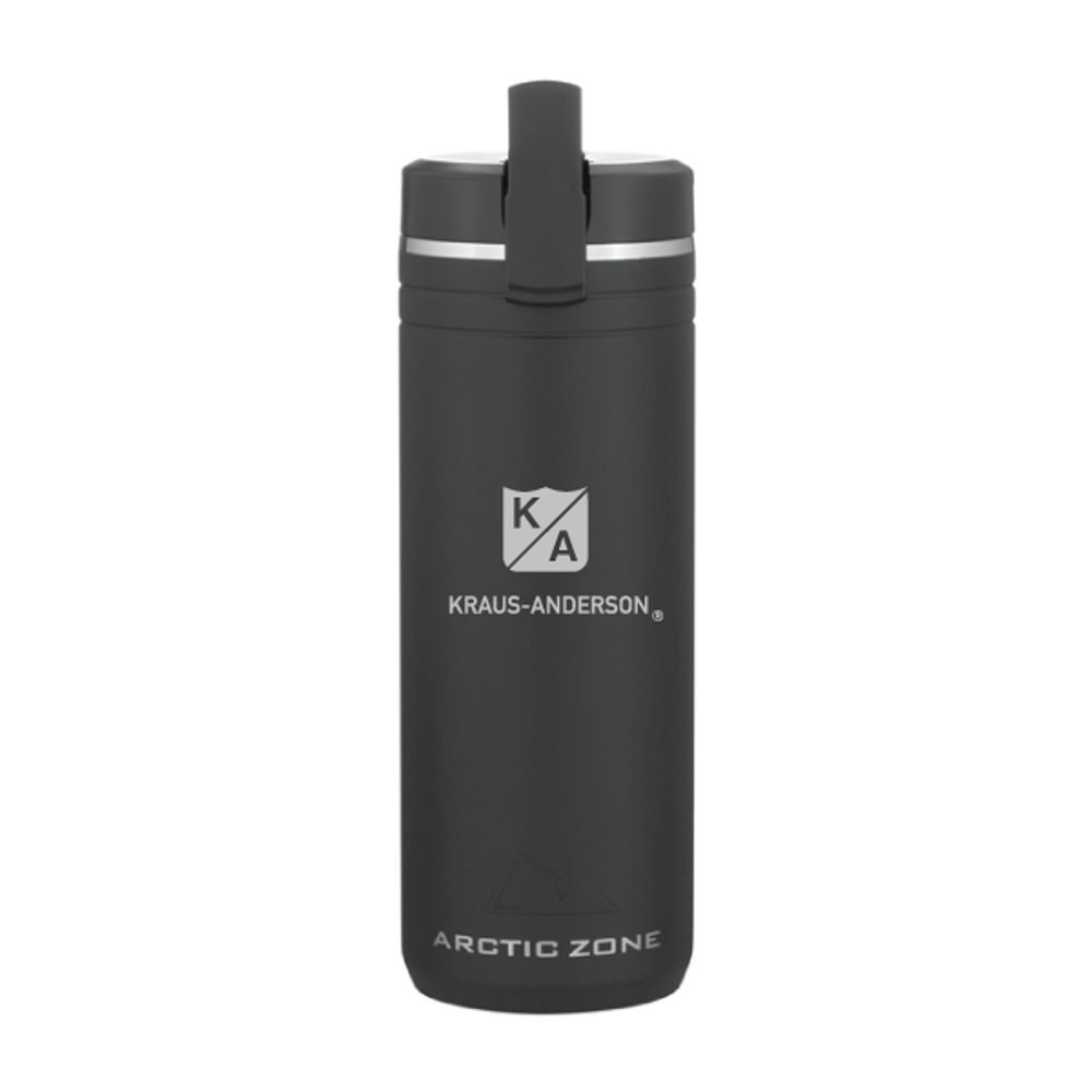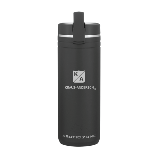 sku: KA1600-39BK24 oz double wall 18/8 stainless steel thermal tumbler with copper vacuum insulation, threaded lid with flip-up straw, carrying handle, stainless steel rim, and powder coated finish · fsc certified gift box included