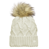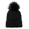 sku: KANE911Totally on-trend, this ladies beanie has a thick ribbed cuff and a cable knit crown that’s topped off by a fun faux fur pom.